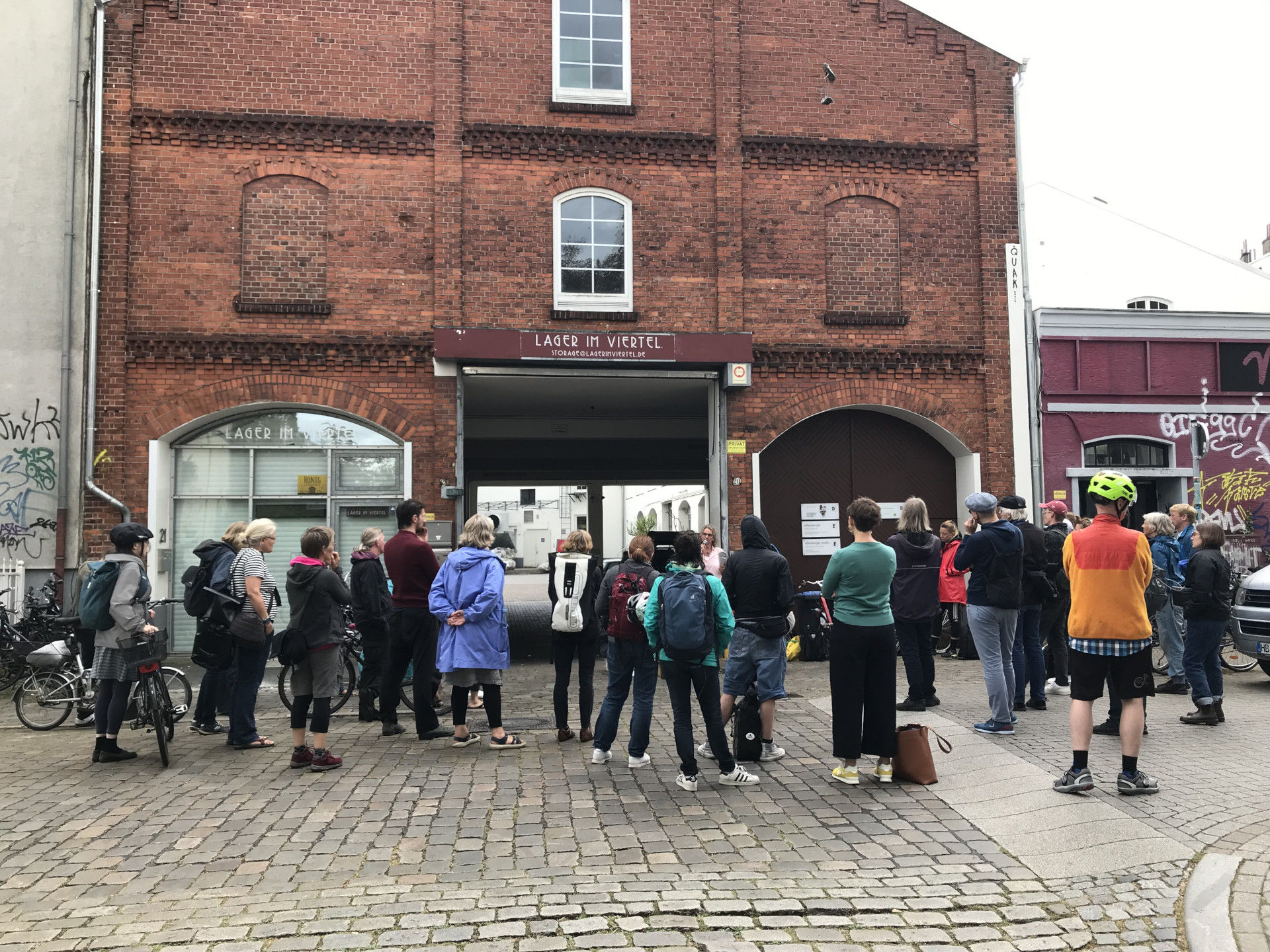 Nicht alle relevanten Orte lassen sich logistisch mit einer einzigen Radtour verbinden (so bleiben das »Aladin« und der Europahafen diesmal außen vor), andere existieren nicht mehr. Dennoch wird deutlich werden, wie viele Orte und gesellschaftliche Gruppen von der Ausplünderung der jüdischen Bevölkerung profitiert haben, die dem Massenmord vorausging. Die Radtour dient dabei nicht nur der Informationsvermittlung, sondern soll vor Ort, im Sinne eines kollektiven Brainstormings, auch die Fragen aufwerfen, wie wir, privat und öffentlich, mit dem NS-Unrechtserbe umgehen wollen.