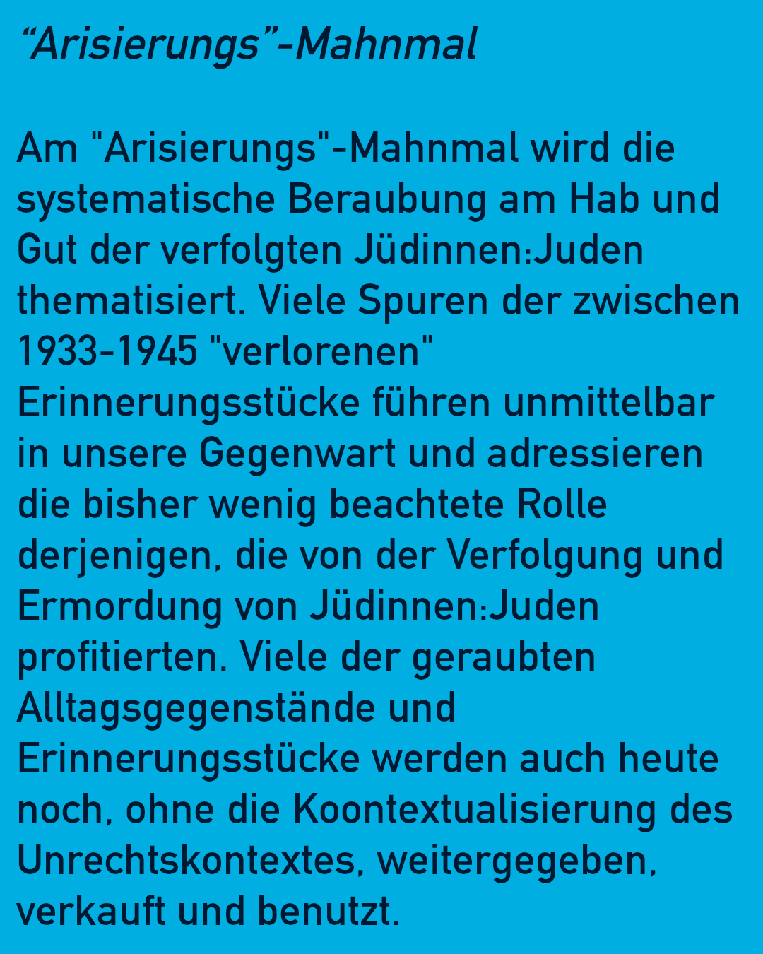 During the 14 days, many visitors informed themselves about »Aryanization« contexts and shared their own thoughts and stories with us. The accompanying call to the exhibition to examine objects for their origin and to reveal concrete clues and traces was very well received. Thank you to all visitors and the shared exchange. Press coverage click here