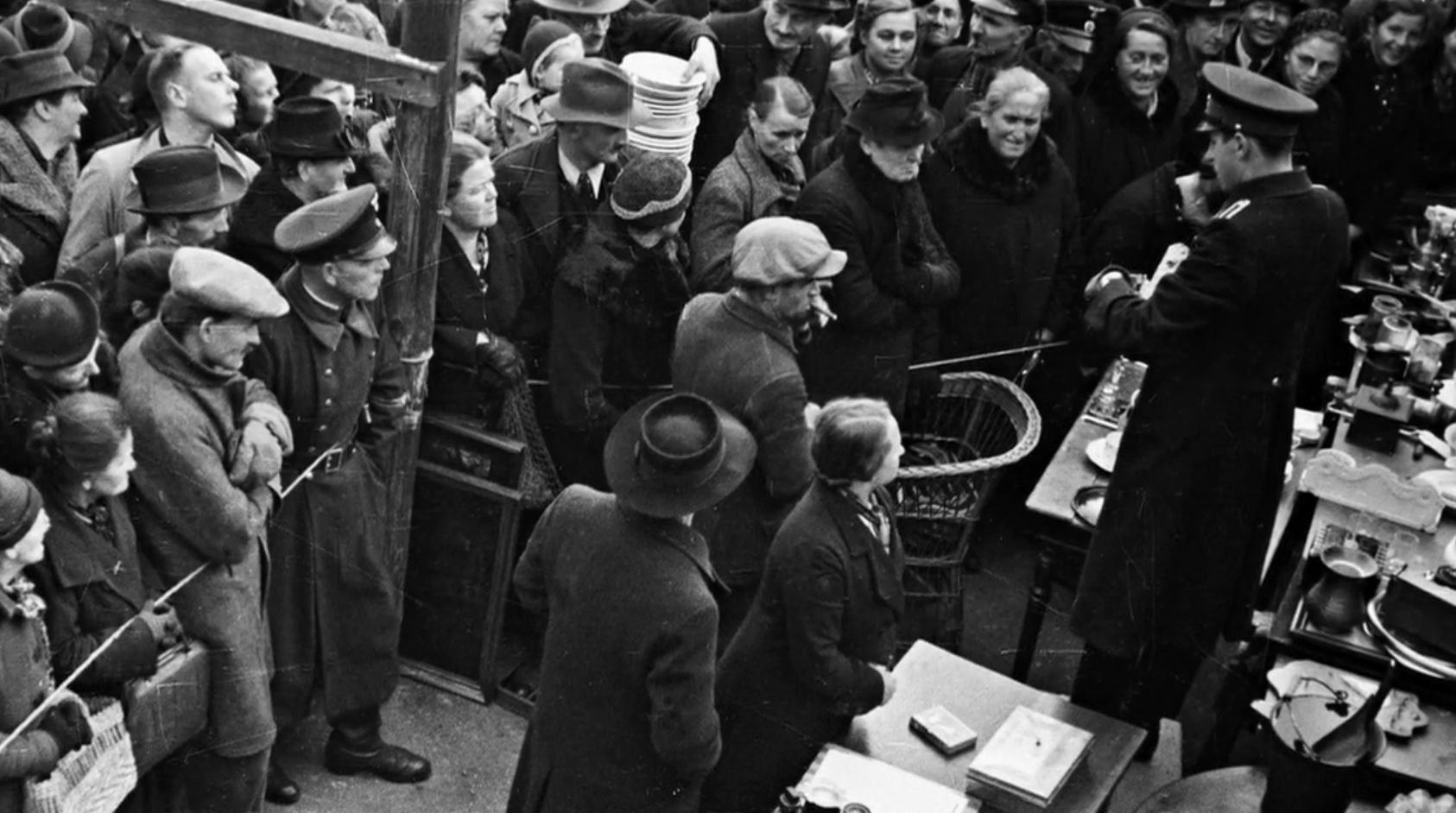 The police photographer from Lörrach in Baden took pictures of Jewish property being auctioned off in October 1940. They show a festive atmosphere. Afterwards, there were complaints from the neighborhood about trampled front gardens - the crowds were so large.