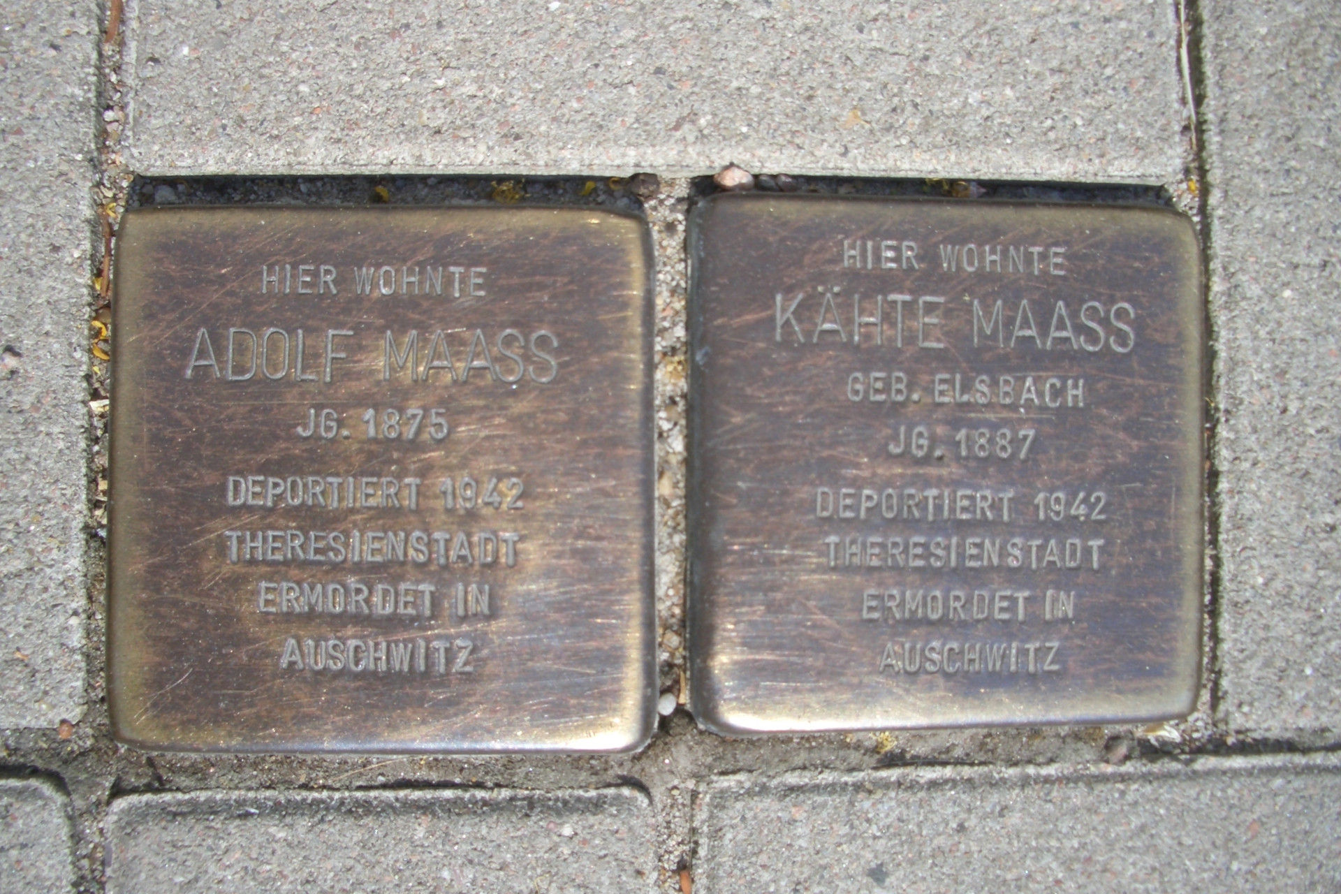 W 1938 r. Käthe i Adolf Maass wysłali trójce swoich dzieci po kontenerze z artykułami gospodarstwa domowego, meblami i częścią ich biblioteki. Po początkowych próbach utrzymania się w Hamburgu, w 1941 r. bezskutecznie starali się uzyskać wizę wyjazdową. Latem 1941 r. byli zmuszeni sprzedać swój dom przy Blumenstraße za mniej niż był wart, a dochód trafił na zablokowane konto. Uciekają przed planowanym transportem do Łodzi 25 października 1941 roku. Pod koniec 1941 r. zostają przeniesieni do »domu żydowskiego« przy Bogenstraße 25. 15 lipca 1942 r. otrzymują rozkaz deportacji do Theresienstadt. Stamtąd para została deportowana do Auschwitz 15 maja 1944 r. i prawdopodobnie zamordowana natychmiast po przybyciu, o czym dzieci dowiedziały się dopiero w 1945 r.